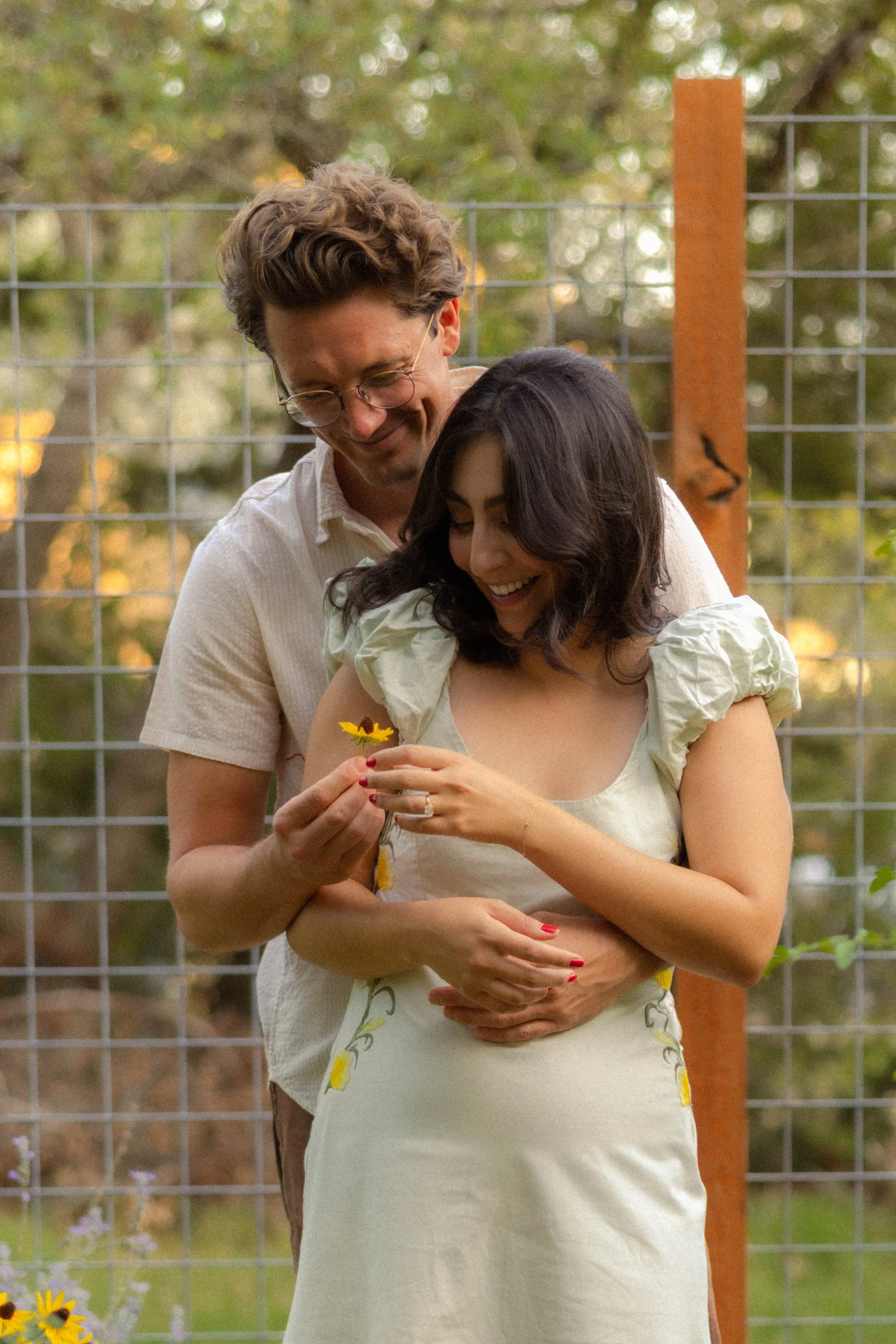 This authentic Austin engagement session featured baking, poetry, gardening, and a backyard sprinkler — everything that made it personal to the couple and resulted in meaningful, documentary-style engagement photography.